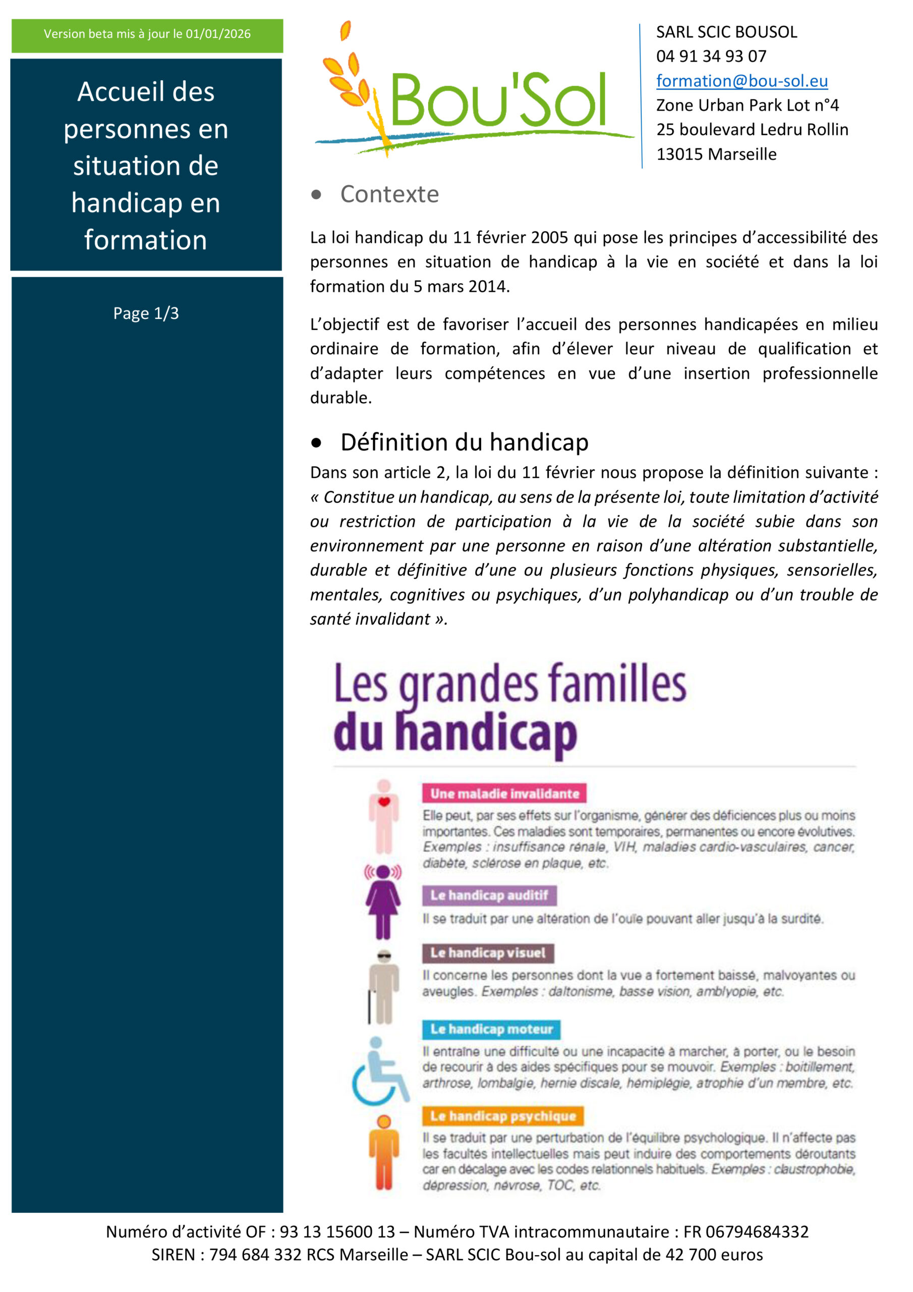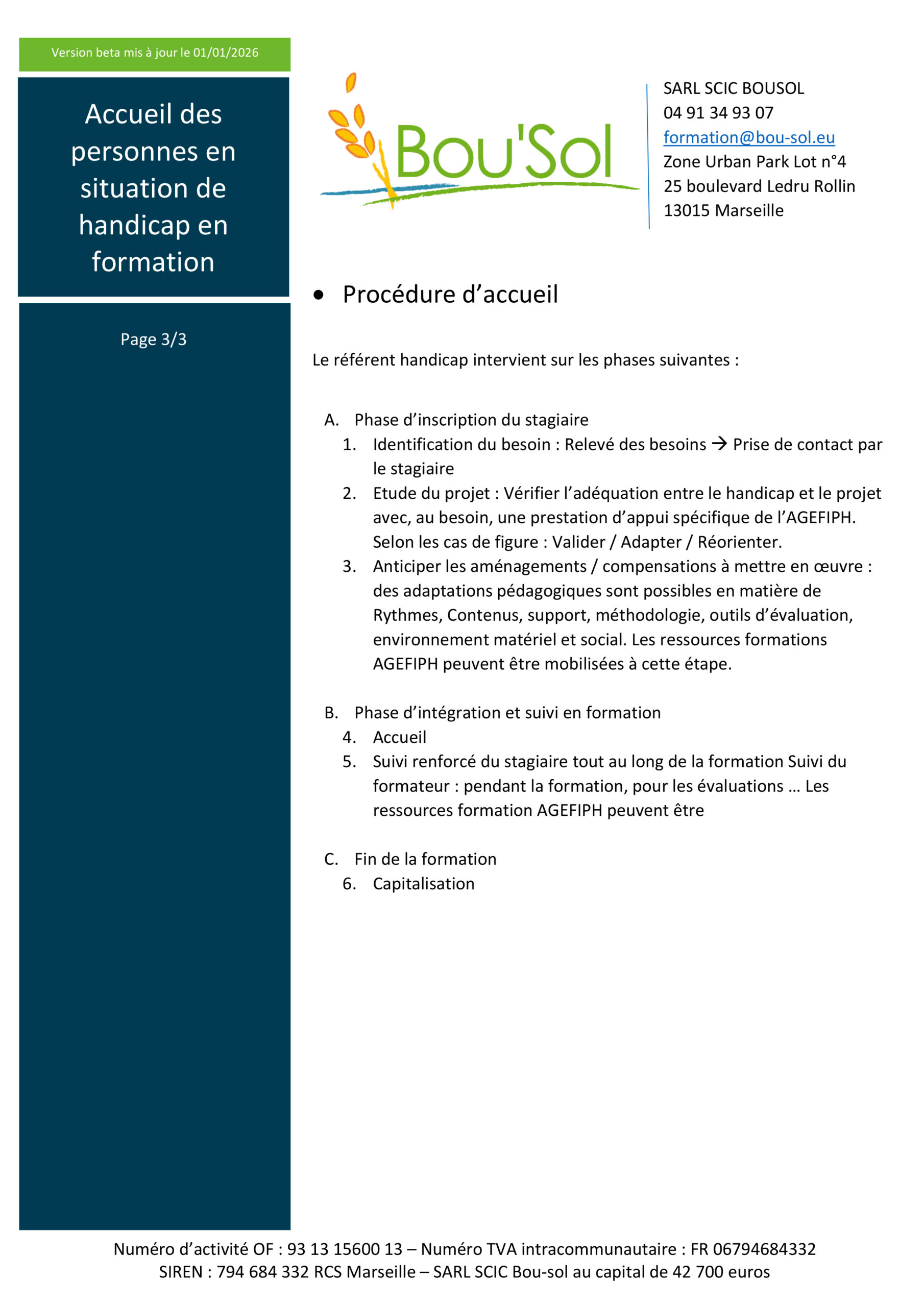 ACCUEIL DES PERSONNES HANDICAPES EN FORMATION